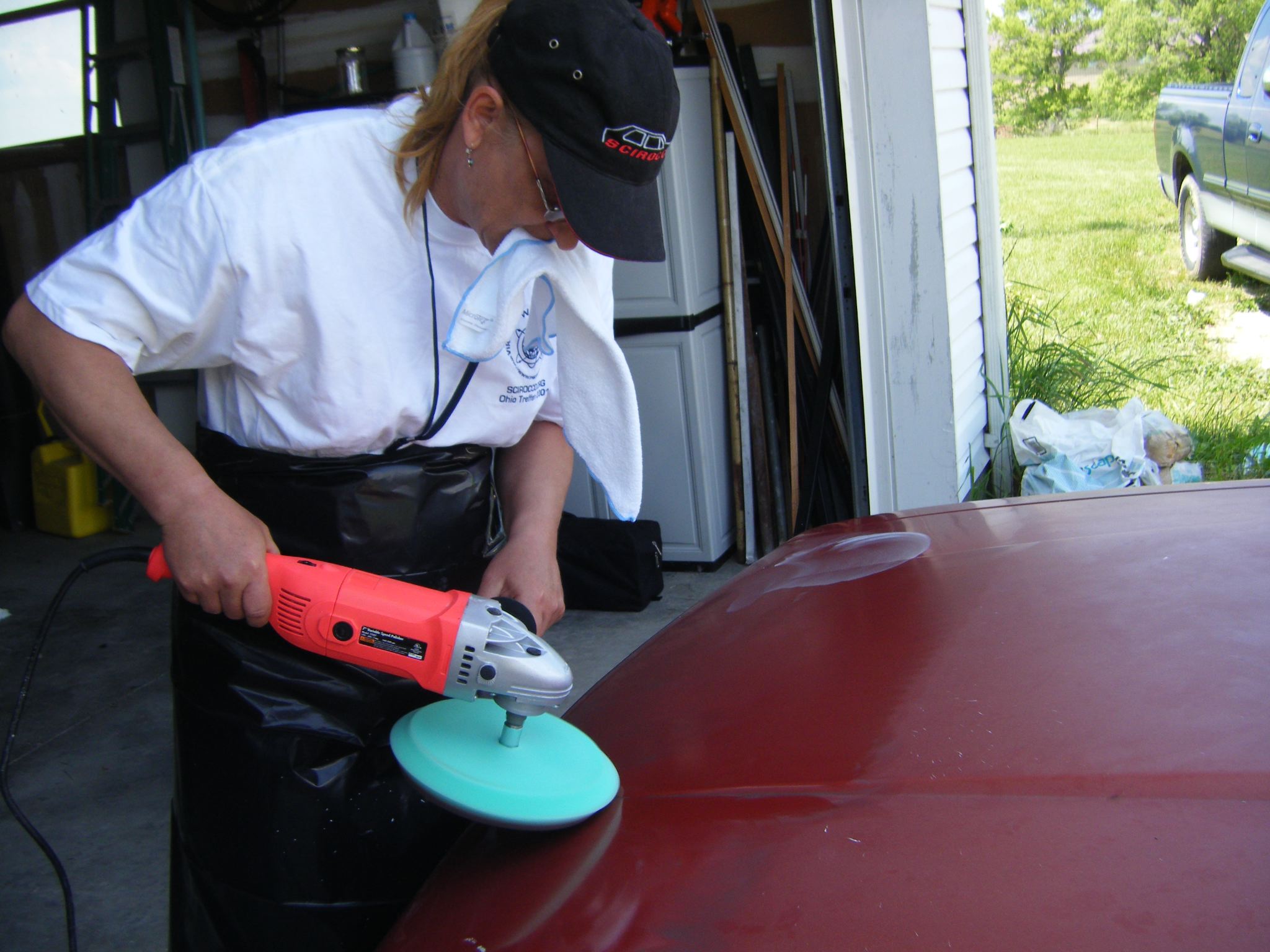 Julie "the bag lady" demonstrating her buffing prowess on Margaret's '80.