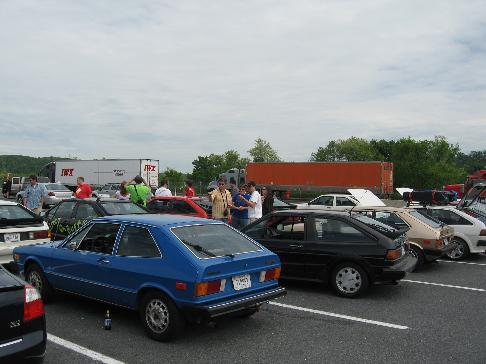 Chatting and checking oil.