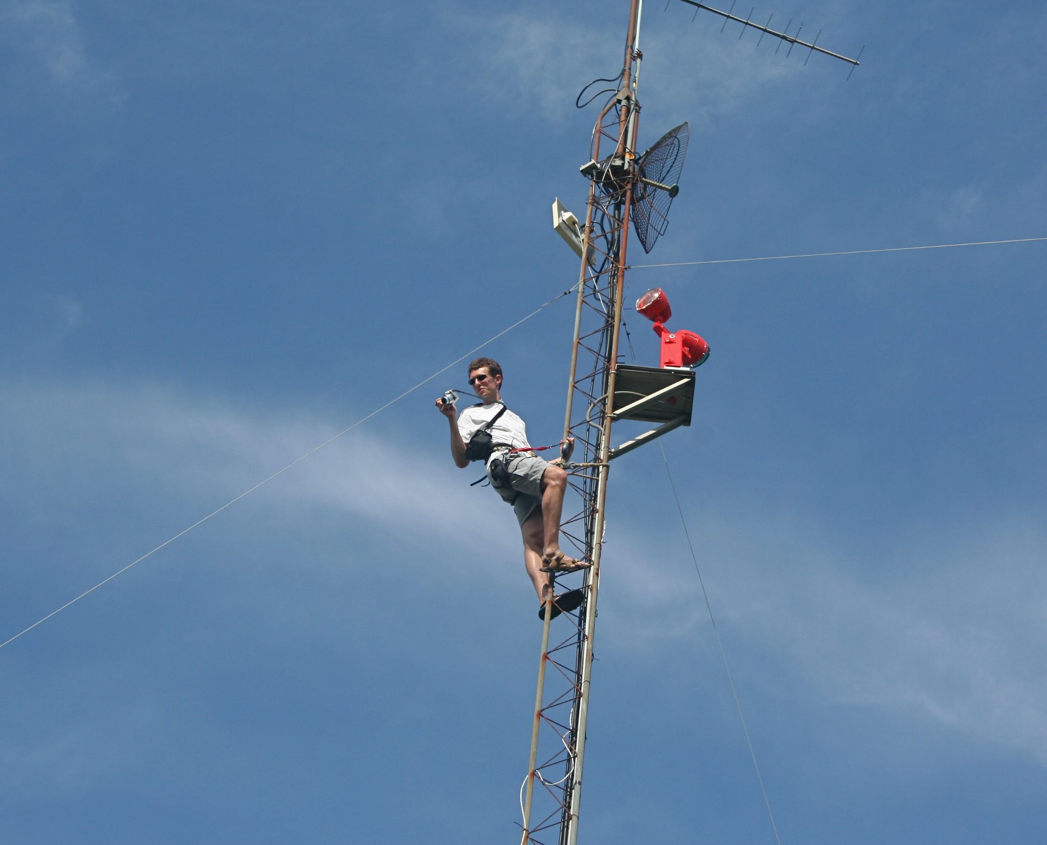 This one is so Ben "no-one-else-is" Harder (He scales the tower in sandals)