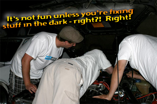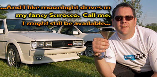 Why, fix the things that broke on the trip Friday of course! (Or whatever other tech-procedure you had planned.) If wrenching isn't your thing, then why not "supervise" someone else's project progress? Work up an appetite, as the Texans are coming with more Brisket, just don't plan on eating 'til 7-8ish. Then, relax in front of the garage with some more of "The Scirocco-List's Funniest Videos." Bring your lawn chair. Tech. Rocs. Movies. You know what to do...