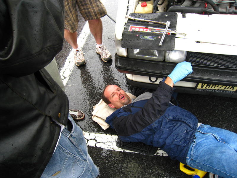 Jim working on Paul's car while singing.