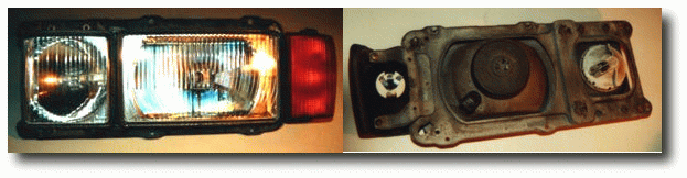- BATTERY NEGATIVE to each light for the H4 (RIGHT on connector), H3 (terminal with TAB) and CITY LIGHT (also w/TAB)