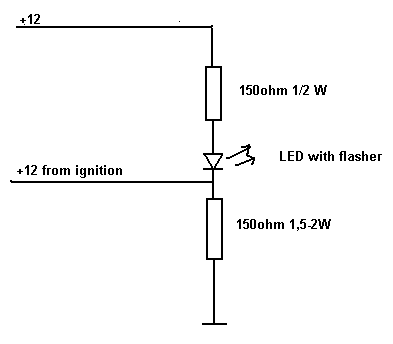 > > flasher biuld in and all you need is such LED and resistor 330ohm 1/2W.