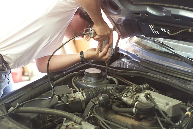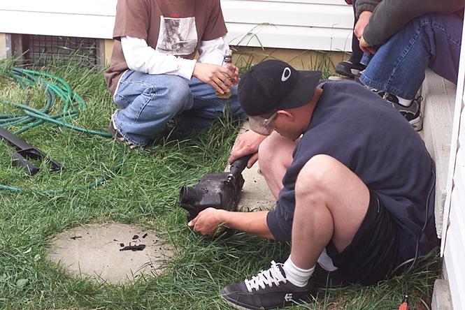 turned into a much larger enterprise. "No Mike, the leg bone is connected to the _thigh_ bone...duh! Here, hold my Crush while I get it." Ok, we thought we lost the metal CO plug in the air box. But Mike got a drilled airbox out of it! Jody Bailey on the