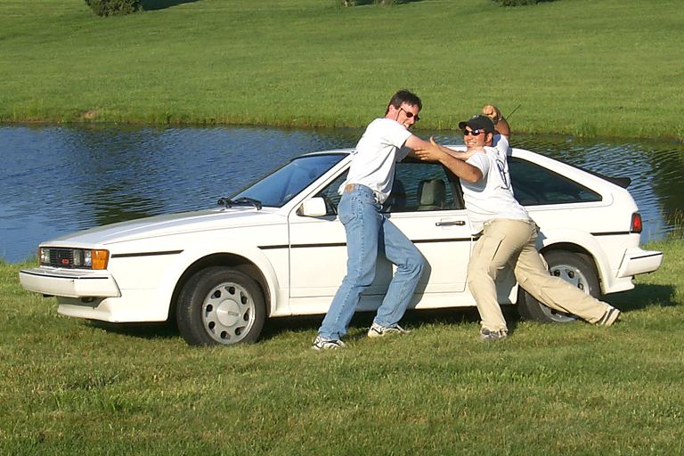 Perry of the Great White North & A4 TDI Meredith (note she is barely taller then her GLI) Scott Orne with Daun's 'for sale' 16v That same white 16v being fought over by Jim and Paul...Paul wins decisively. :) Todd Snyder Josh 'Mc' Able, and his Seidl Kitted 16v (What are those rims BTW?) One of the perils of having shaved doorhandles with power actuaters... ...and being on a hill. :) He gets by with a little help from friends. Jan Folkson and his award winning stock 86. Tom Romans and his Wolfsburg edition Bill Scarince from Virginia Ellen Northam. Note, she is taller then her ride. :) Rich Deede and his ill fated 16v monster. Might be one of the last public photos of this car... :( Broken front cross member finished it. Jason Arms Chris Roberts and a borrowed '87 8v, which he now actually OWNS! (Daun moves a lot of Rocs, eh?) Paul 'Botch Inside' Maione Brett V. (Y.T.) with the Brocks. ;-) Jeremy & his nice 16v Josh Alee and her 16v Rabbit Jason 'The Mad Bastard' (yeah, I think he normally drives like that. Mike Leach and his (come-a-long-ways-from-last-year) 87 16v Bed Harder and his dyno tested 16v (we haven't seen the last of him either) Jason Camissa...roight on then... He has a variety of unresolved issues... :-) Why, isn't that Ben Harder again with his Mk1 'S'? Daun's Dad and the el-super-cheapo Rabbit Diesel. Fox (again!) with Neal |