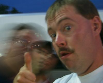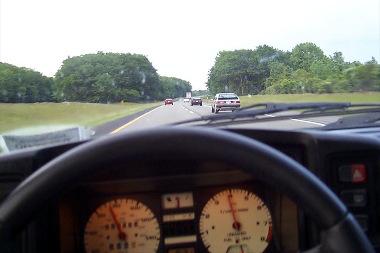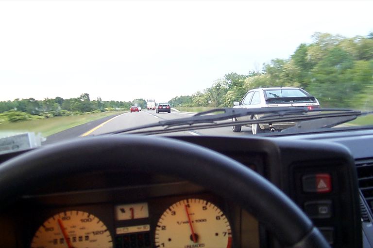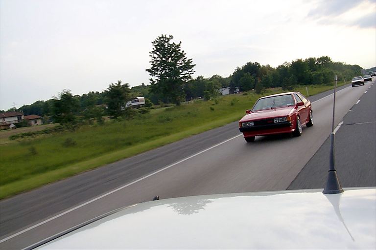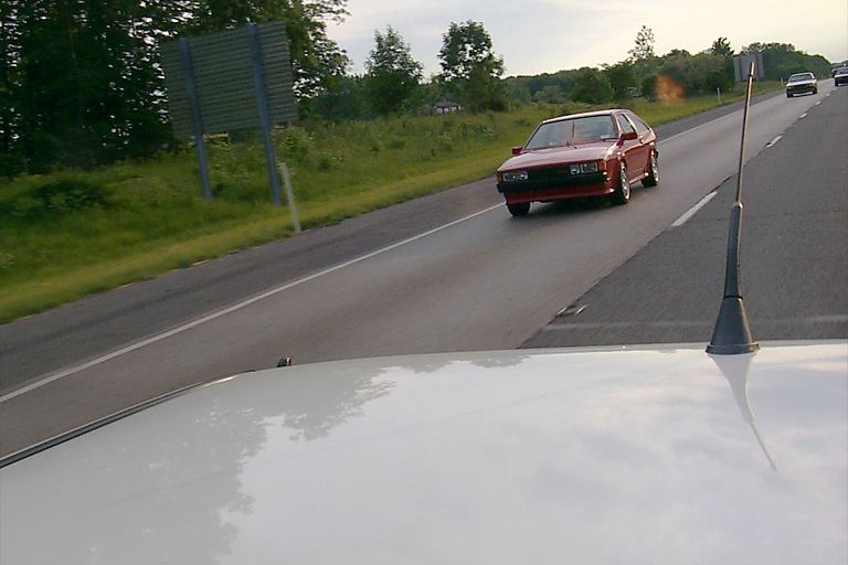On way home...hanging the camera out the roof. That's Mike Leach's car.