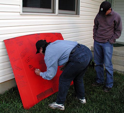 | Everyone signs the hood! |