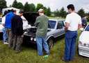 Resting after the road rallye, where Mike Potter and I actually nailed the time perfectly, but as we supplied the prizes... |