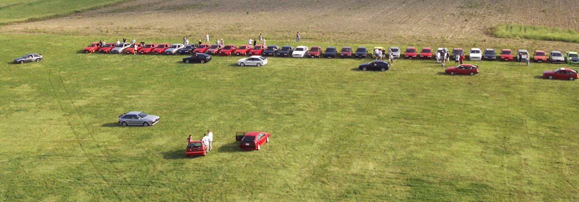 View from the wreckage - Cincy 2002 (long but a good read) Oh... My.... GAWD!!!! This weekend was beyond expectations - I had a great time and hope everyone else did too. My first and only complaint before I forget - there were some beer bottles / trash left in the yard. This is NOT acceptable - please clean up after yourself. On the whole though, it wasn't bad - cleanup is pretty much done, only took an hour or so max. So for posterity, here's a rundown of what is still in my already hazy memory. Friday, Breandan was the first to arrive at about 10:00 AM while I was still busy mowing the parking area. I honestly expected to get more mowing accomplished as the first arrivals aren't usually 'til noon or later, but it wasn't a problem. Anyways, Julie had left a message on my phone while I was mowing that she got separated from the group in Rochester because her car died. She had no phone with her either... I worried myself to death about her the rest of the day as Jim said they didn't see her.... Eventually people began to trickle in, and by about 5:00 it was becoming a steady flow of 'roccos pouring into the driveway. Julie appeared much to my relief - BEATING the rest of the Rochester crew by almost an hour! Way to go Julie! :) A collection for dinner was started when the last two "big" caravans (Rochester & NYC) arrived, and over 20 pizzas were ordered and quickly consumed. As normal, the alcohol started flowing and the socializing continued... though it broke up a little earlier than the last couple years - I was one of the last to hit the sack at 1:45. Saturday is a blur. Really. Tech procedures got going in earnest, and several people were nice enough to finish stripping my sister's Golf GTI parts car. Around 4:00, everyone gathered near the garage to get the details on this year's car art in the backyard - the original idea was to spell out "rocco." However, once we got rolling on assemblying it, we figured we might be able to spell the entire word with the number of cars on hand. We made it - barely. In order to have enough cars, we rolled the engine-less shell (ex-Wenzel mobile) and the brake-less '82 (under it's own power) to finish off the "S." After more photo arrangements, dinner was served. (BIG thanks to Ellen, Angie, and my very own mom for making the grocery run, and Todd & Breandan for playing chef.) $5 each for all you can eat worked out well to pay for the food and have a little left over to donate to running Scirocco.org. After dinner & darkness, we shined the video projector shining on the garage door and showed pics from the weekend's events plus a whole bunch of videos from Jason Cammisa's laptop. (Love the "Top Gear" stuff!) Afterwards, many dispersed to their respective hotels, a few of us die-hards kept right on partying 'til about 3:30 AM.) Sunday was much more laid back. Many people showed up to hang out for a bit and then begin the trek home. By mid-afternoon we were down to a mere handful of people relatively speaking. (10 people or so?) Brian McGarvey and Brian Haygood replaced motor mounts in Josh's 1.8t and sent him on his way. McGarvey then pulled the Topless Bunny into the garage to change the master cylinder. It was a more involved process than originally planned as most of the rest of the group went to dinner and they were still there when we got back around 9:30. The Brians left around 10:30, only to return because of a possible brake leak. That turned out not to be a big issue, so they departed sometime around midnight. At that point I collapsed into sleep. This morning, Jason Cammisa, Scott McNew (non-lister travelling w/ Jason) and Ellen left by lunchtime, leaving me to sink into post-Cincy depression. Man it's been a quiet afternoon. With any luck, pix will be up on Scirocco.org before too long. Also, I imagine there will be a number of changes for next year though the party is most definately still on. If you missed it this time, plan on it next year. Daun Yeagley - Wilmington Ohio |