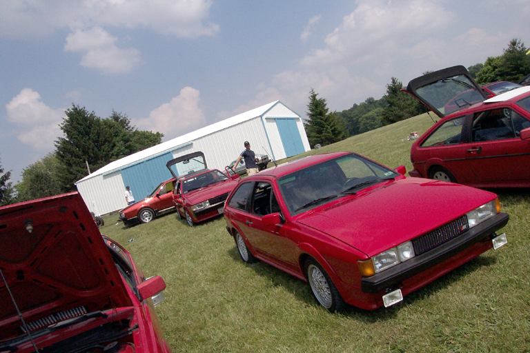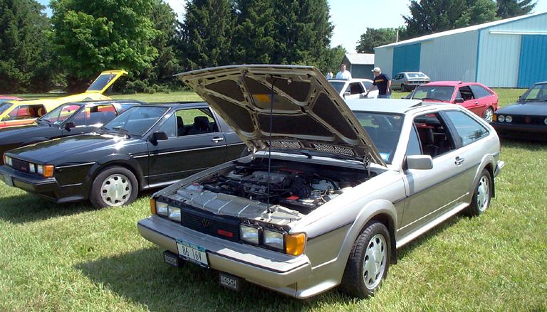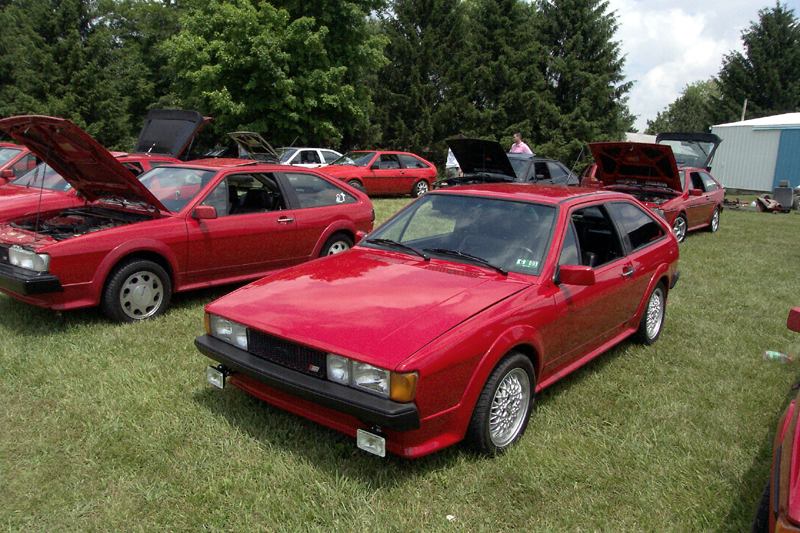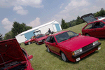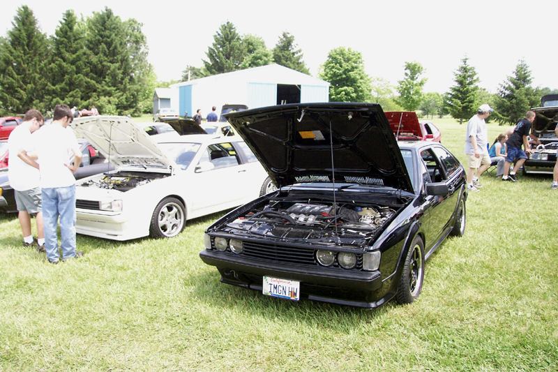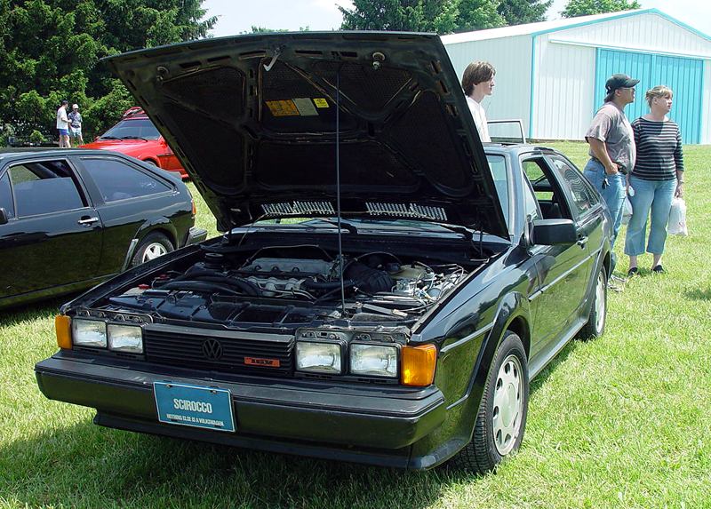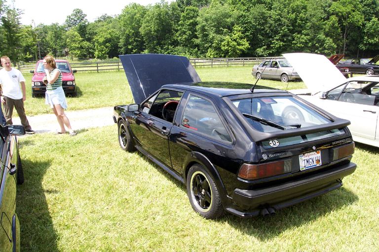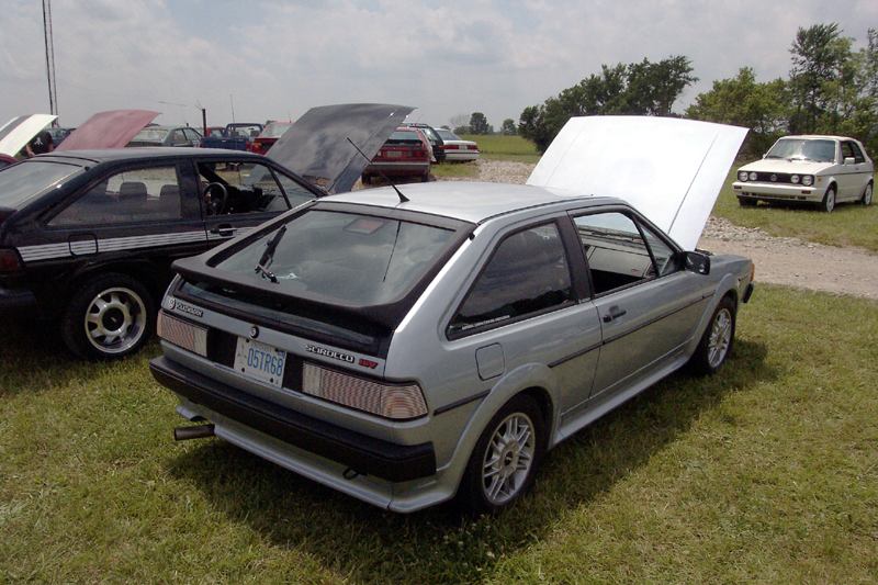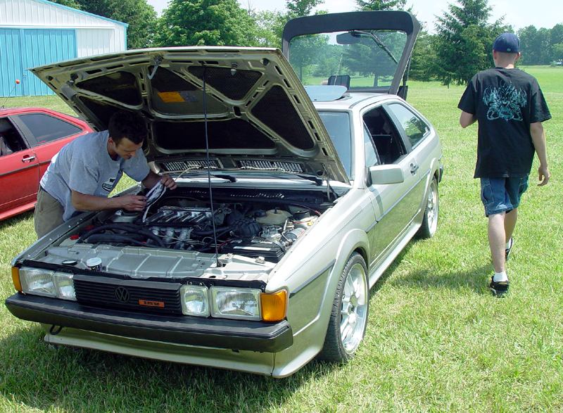 Kim's sweet 8v, hugable rims. ;-) Cathy's Canadian 16v, that stock color is just great! Eric & Katy in front of Cathy's car, with Cathy standing behind. Cathy's car has a 2L 16v, euro equipment, and White Cat tails. I believe that's Brian Haygood's car next to Ben Harders blacked-out 16v (turbo soon Ben?) Up close with the Harder 16v. :-) Blacked-out is neat. Jason Cammisa 2L 16v, now featuring some of the latest really clear corners. Side shot of Jason's car. Totally put back together with care after a bad accident, good story on the reconstruction. The madly cam'd, 50mm'd, and highly compressed (shaved head) 2L 16v of Brenden M. Tobias's round-eye'd mk2 16v, super nice conversion, very pleasing. That's Tobias in the upper right. Tobias came all the way from California, he'd do it again too! One more shot of the Tobias-mobile. Listening to him and his Dad speaking German really lent an authentic touch to the gathering. :-) Brett's car. Custom grill & lights. Spoiler by JE Designs, customized M3 mirrors from Mattig, fatty rims by Brock and 180hp 2L 16v to top it off. Good looking stock 8v, is actually Daun's winter beater! Best $200 he's ever spent! Jan Folksons super 86 16v, in almost pristine stock like condition. Oddly enough, this picture was number 86...karma. Is that an upper strut tie-bar?! Ok, ok, it's probably a necessary mod to hold the chassis "square", we forgive you Jan. Another nice stock appearing 16v, even with the dealer plate, this is Calimus (William Synder's) car. Is the O2 working now? :-) Dan, from Georgia with William I believe. Another shot of Brendens ride. (Wish I could have had a chance to drive it, sorry B!) Note the one off front spoiler. It's part of an entire kit from Germany, but just the front spoiler was custom blended with the stock 16v kit. 91 Cheapass Rons 16v ride, "Victor" is his name-o. :-) Josh Hignight's Mars (not Tornado!) Red with deepy dishy very hard to get Borbet Type A rims. Soon to be quite a 16v monster...stay tuned. This seems to be the Daun Yeagley 'find-a-home-for-me' Scirocco project of the season, sold by the end of the weekend. Gombey from Illinois Andy from NY, rode in with the Rochester crew. We probably have him hooked now. :-) Brian Haygood's ride I believe. One of the mystery 16v's...I know it's red though! Nice looking car in these next three photos... ...not sure who's it is though! |