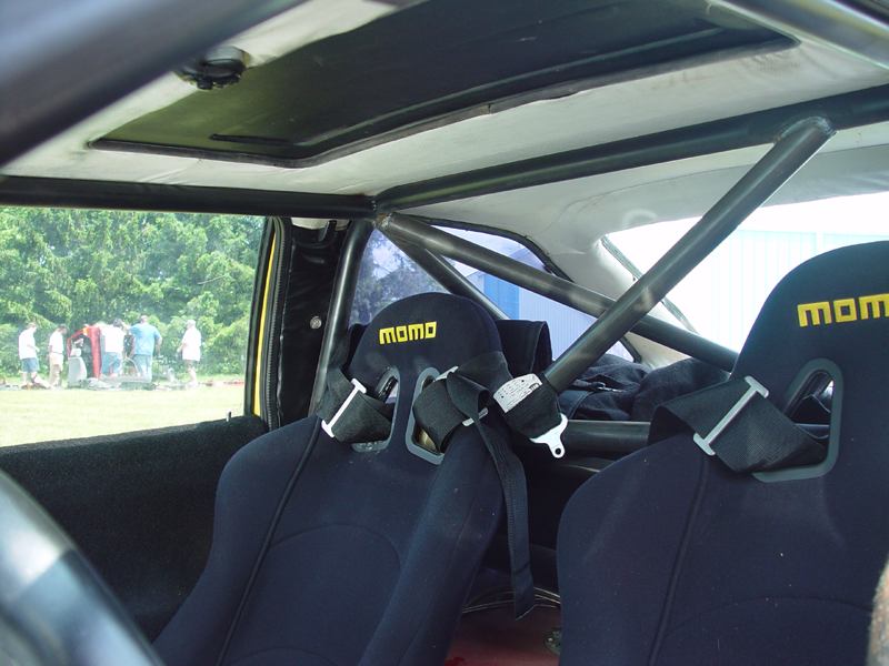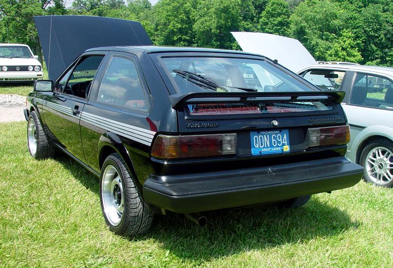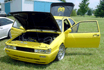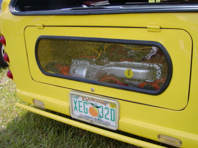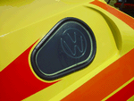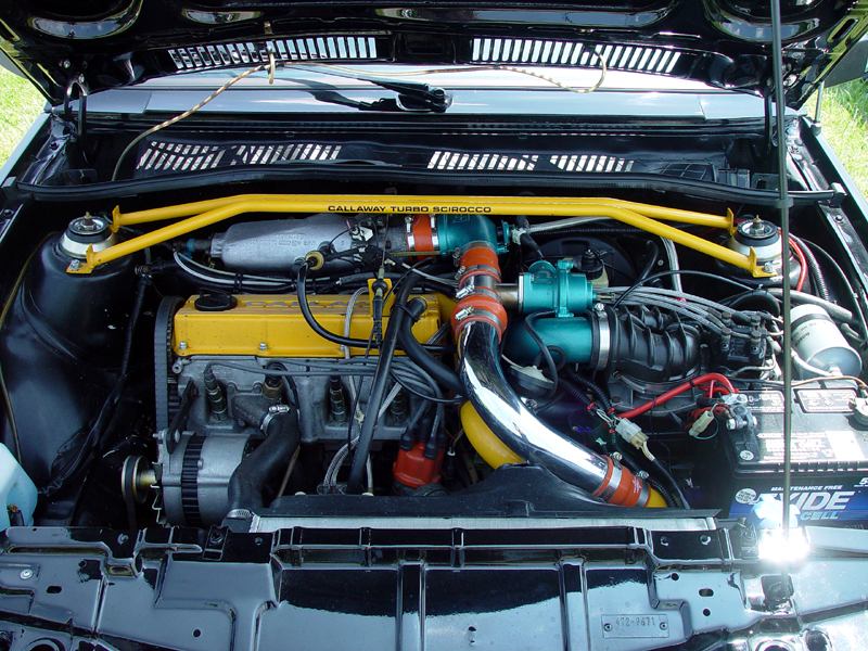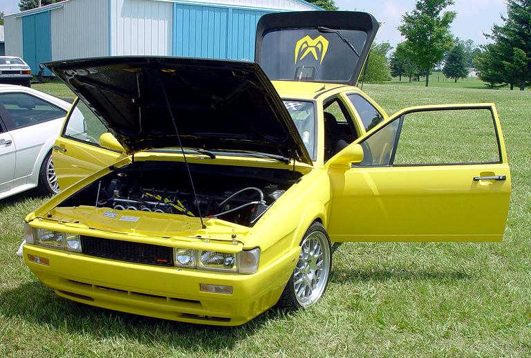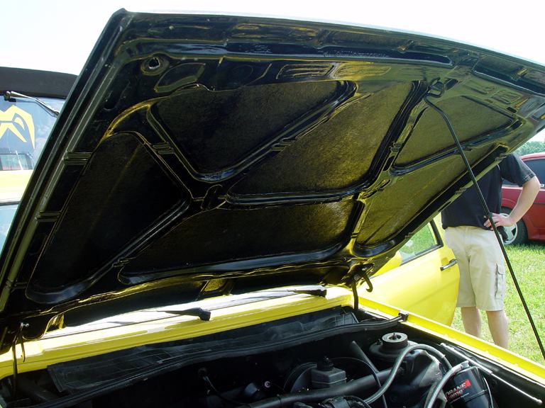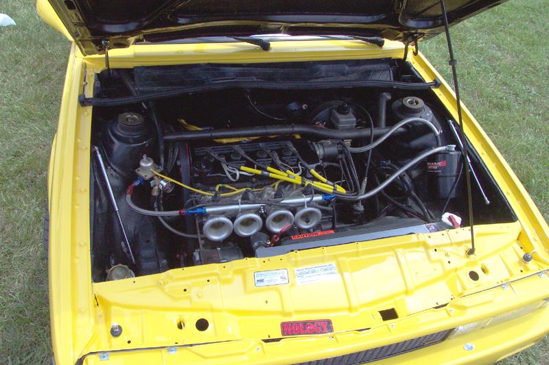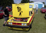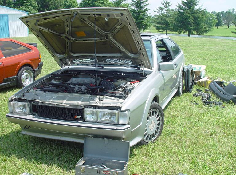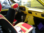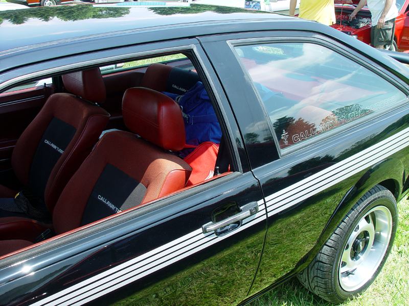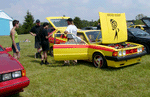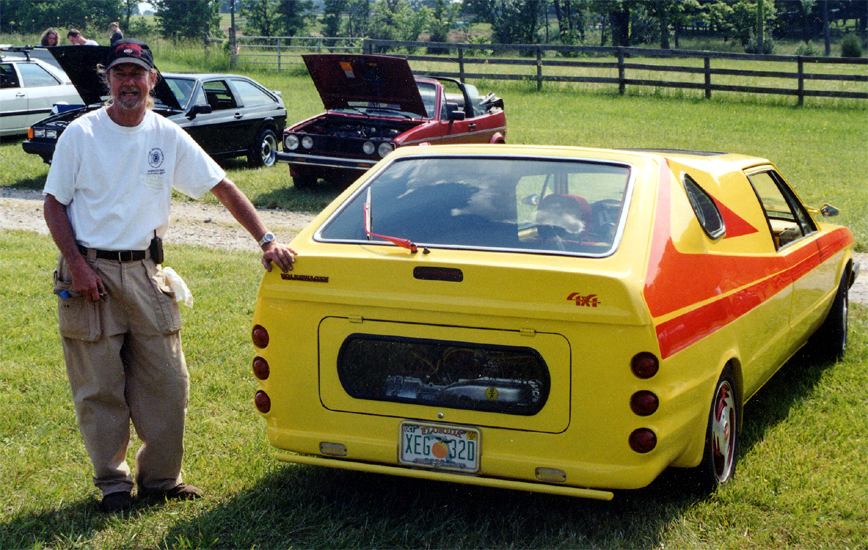 Patrick and Allyns car. Close on Patrick's car, cool off-center VW emblem grill and full Kamei kit are just a couple of the nice features. Very interesting ride Patrick! One of only a handful of silver colored cars here. Angie's car, finally found another ATS 6 spoke rim, yeah! The famous Uncle Rocco factory Callaway turbo... ...A rare ride (1 of 10 or so) owned by Steve Szuba, with many Callaway parts. Great as usual! Anyone have an exact match for this cloth pattern? Steve is looking. Lowell Snow's very custom remade Scircco Mk1 truck-like thingy... Even the hood flips up in a very interesting way... Nothing says 70's like neon. Looks cool lit up at night. :-) It even has another engine, air cooled too! Wicked interior too, hyper yellow I might add... I think the orange is a stock color... :-) Check out those hinges! Lowell with his creation. Scott Kraus's redone freshly painted Seidl & Reiger bodied Roc. Rims are by Fiske. Nice exterior package. Carbon fiber hood hides individual throttle bodies on a 2.1L 16v. Quite a custom dash, note cage also. Scott Kraus reaching for a refreshment. :-) There has been problems with CF Scirocco hoods in the past, but this one looks great! Close on motor, note ITBs, yum. Custom front upper reinforcement is very serious looking. Through the interior shot Underside of CF hood on Scotts car. |