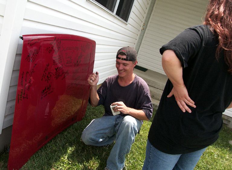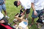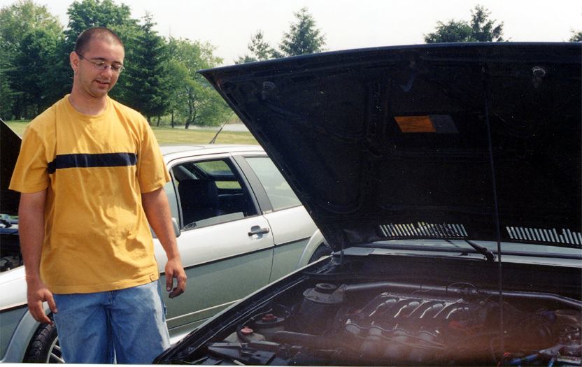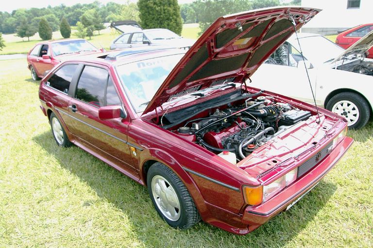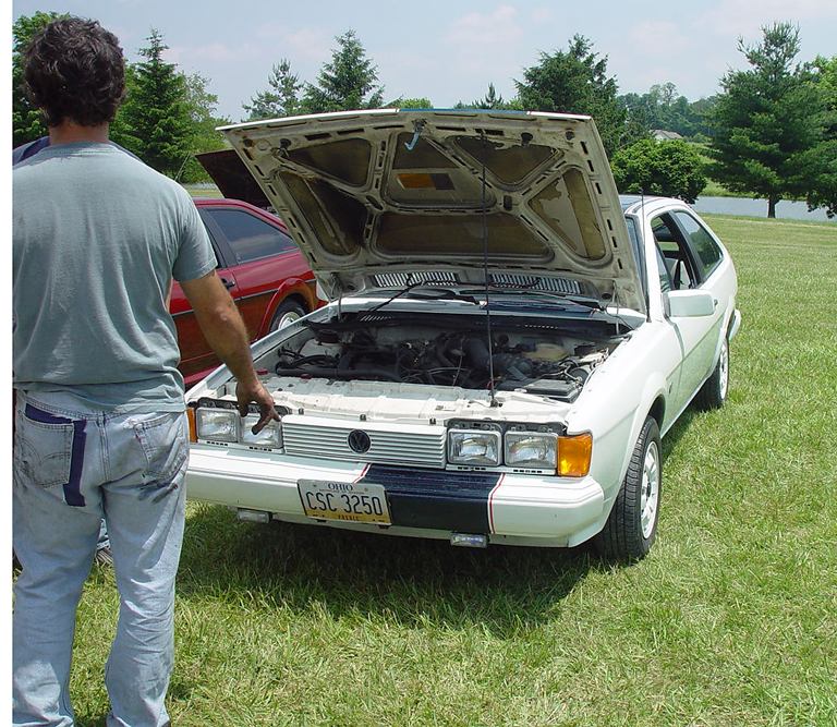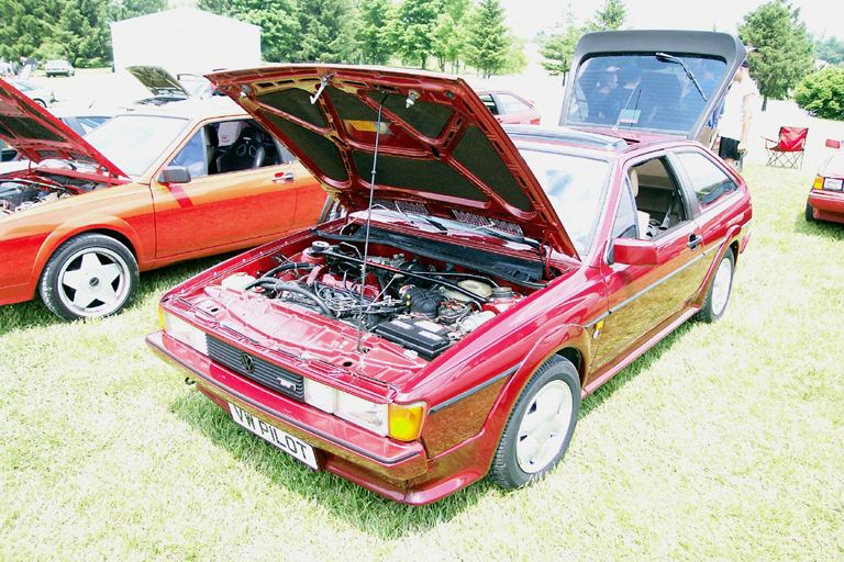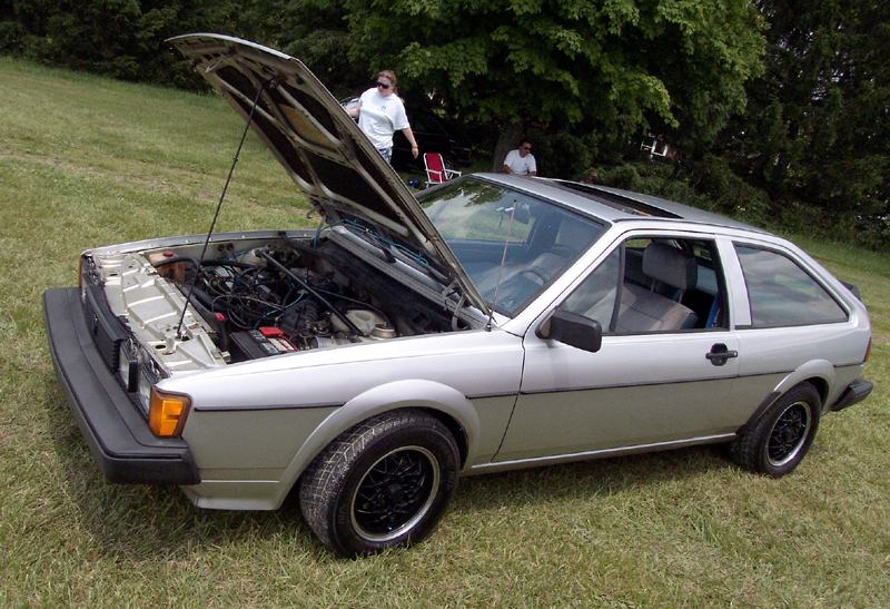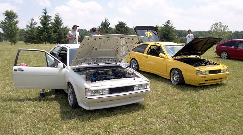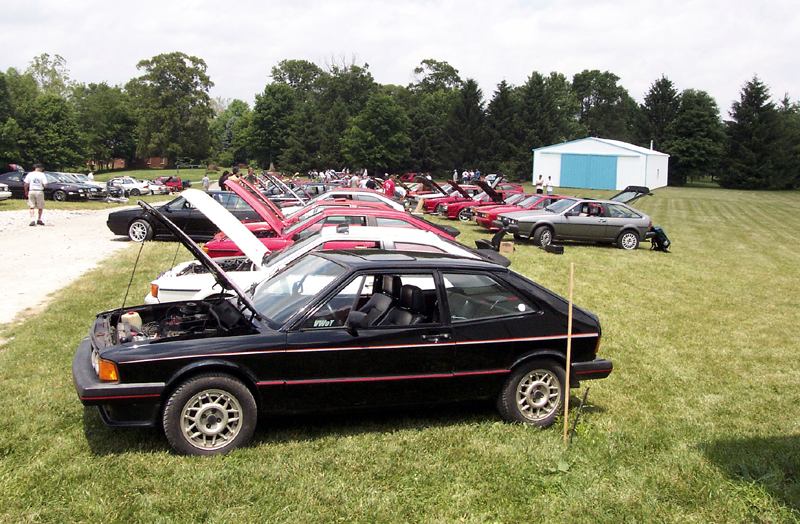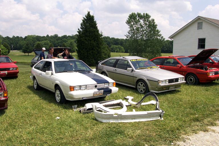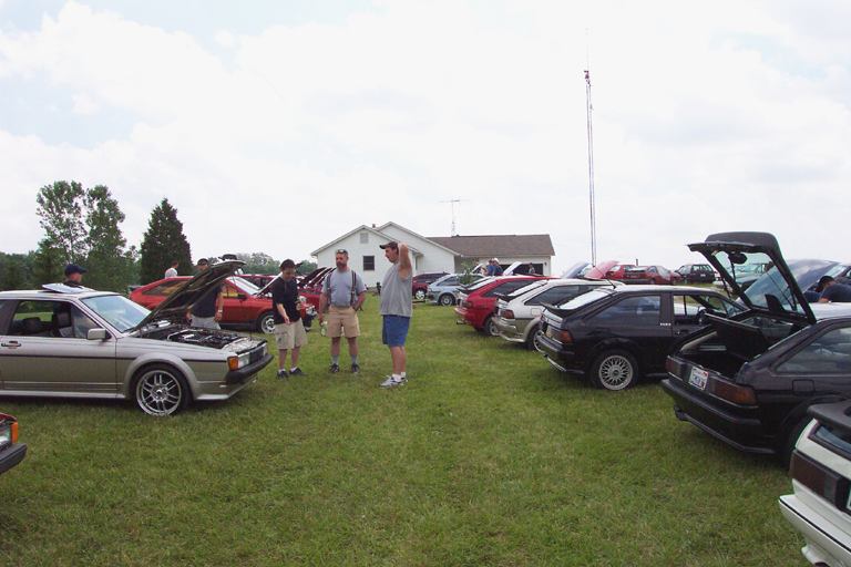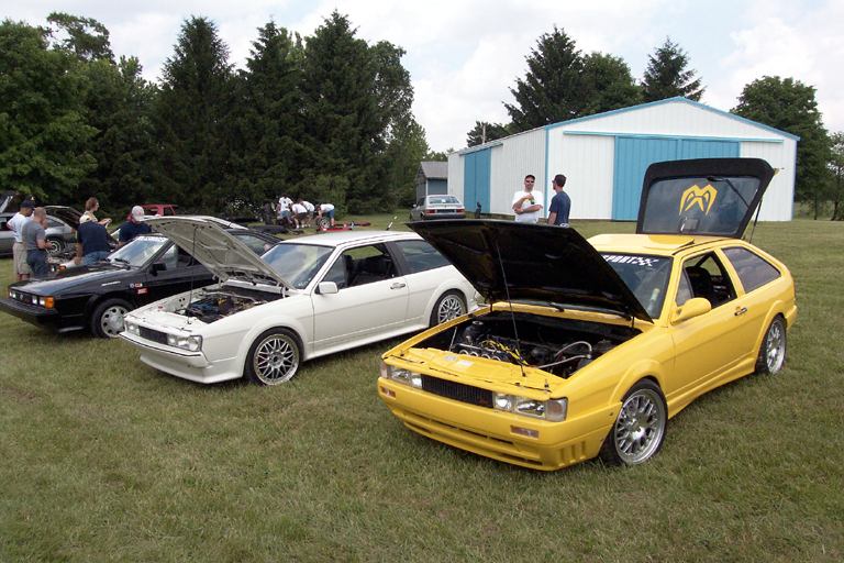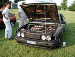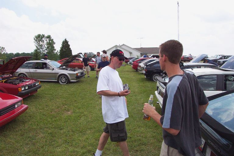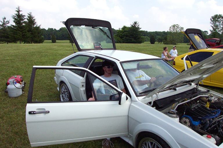 I'm pretty sure those are clouds reflecting in the CF hood, it's very nice and shiny. One of the three or so white 16v's at the gathering; it was very very nice also. As I like to point out, white is the best after-all. (nyah nyah, ha! :-) ) Shot from the roof of the garage shows the scale of our Scirocco centric event Quite a large turn-out this year, more Scirocco's in one place then there's been since they were imported. :) That's me (Brett) looking for things to take pictures of, with a totally wierd look on my face. Rich Deede is in the foreground. That's Andy in the middle, Scott K. on the right, but I'm not sure who that is on the left... 176 177 178 Daun's 16v again, did I mention that I like these rims better... ;-) A round mk1 style headlight conversion going on this mk2, I think it's going to be great when it's done. A Golf / Jetta big bumper hangs off the front also. Too bad the rear axle is nearly rotted off. ...still looks alright though for an Eatern Mk1. Not sure who's car this is here... Cathy's car, Steve's car, and Kim's car in a row. The award winning 8v from Kim again... Can I mention the hugable rims again? :-) Brenden M. looking a bit saddened by something... Ventiled euro GTX taillight mod, it's all mine, you can't copy it. :-) Rich Deede put the magic touch on them for me by tinting them from the inside...he's done this before with great success. Rich briefly grows another arm to steady the light. Jim and Katy in his vert trying to catch Brian M., how'd that come out again Jim? :) A shot of Josh Able's 1.8t install with big T3/T4, 270 reported HP to the wheels even!. Yet another shot down Daun's lawn... Event attendees signed a spare hood with wacky messages, Scott's got a good one apparentely. |